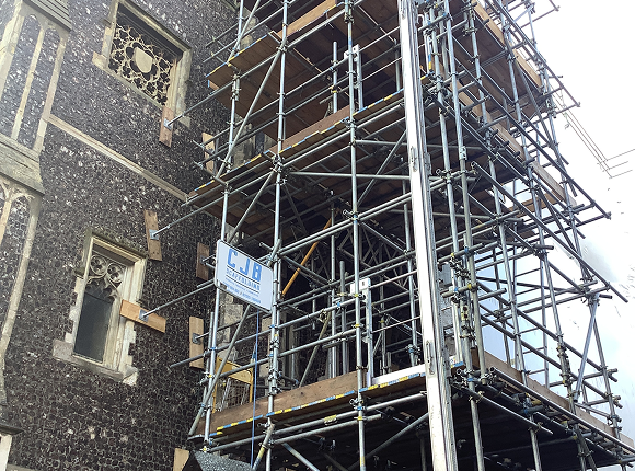 We use non-invasive scaffold fixings and careful positioning to preserve architectural detail and avoid structural harm.